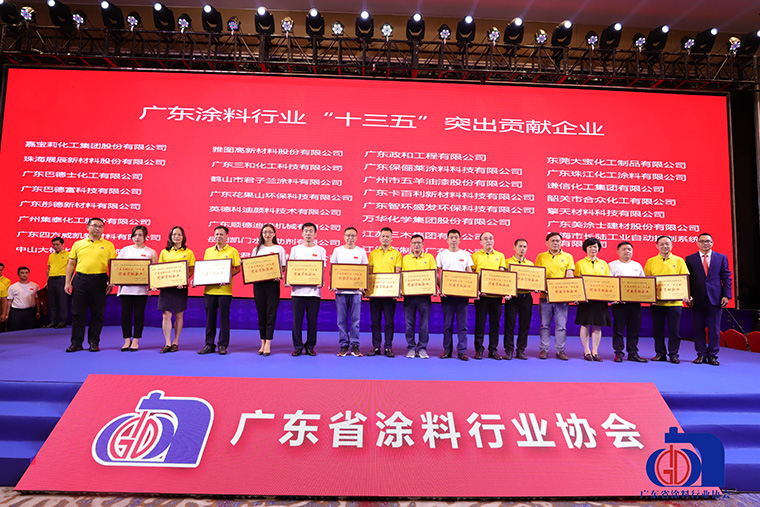 會上,廣東省涂料行業(yè)協(xié)會在《關于表彰廣東涂料行業(yè)“十三五”突出貢獻企業(yè)的決定》中指出,在“十三五”期間,在國家政策引領和全行業(yè)共同努力下,廣東省涂料行業(yè)涌現出一批勇于創(chuàng)新、深耕細分、精益管理的品牌企業(yè),廣東涂料產業(yè)的快速發(fā)展,已成為全國涂料行業(yè)增長最快的區(qū)域之一。為進一步樹立行業(yè)優(yōu)秀標桿,激勵行業(yè)創(chuàng)新發(fā)展,肯定發(fā)展成果,對大寶漆等主要經濟指標超過行業(yè)平均水平,并在品牌建設、科研成果、環(huán)保治理、智能制造等方面取得了重大突破,