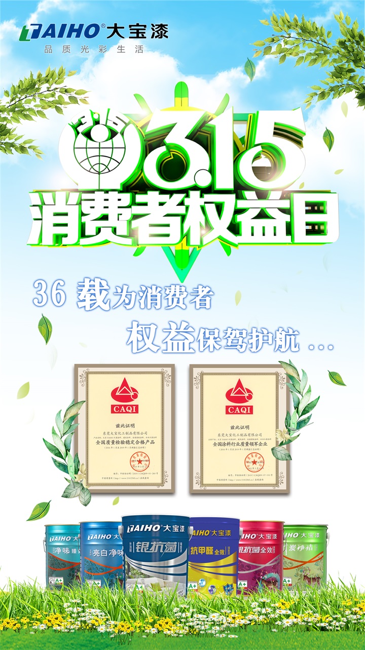 引導(dǎo)質(zhì)量消費(fèi),建設(shè)質(zhì)量強(qiáng)國(guó)。日前,從國(guó)家質(zhì)檢總局主管的中國(guó)質(zhì)量檢驗(yàn)協(xié)會(huì)傳來喜訊,在中檢協(xié)舉辦的2019年“3.15”國(guó)際消費(fèi)者權(quán)益日活動(dòng)中開展“產(chǎn)品和服務(wù)質(zhì)量誠(chéng)信承諾”主題活動(dòng)中,大寶漆憑借過硬的質(zhì)量榮獲“全國(guó)涂料行業(yè)質(zhì)量領(lǐng)軍企業(yè)”和“全國(guó)質(zhì)量檢驗(yàn)穩(wěn)定合格產(chǎn)品”殊榮。