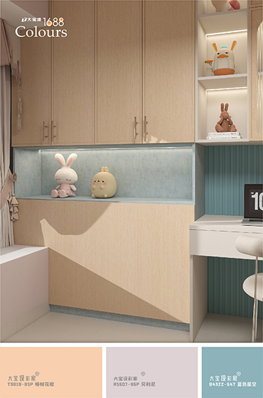 不僅適合打造大面積的墻面背景,也能作為點(diǎn)綴色,用于打造清新視覺焦點(diǎn)。配大寶設(shè)彩家推薦的輔助色如絳紅、滄海一栗、裸膚色、藍(lán)灰色等低飽和色系,亦可運(yùn)用漸層疊加或撞色的涂裝方式,打造豐富卻不突兀的空間層次感,為家注入靜謐又富有生命力的夏日氛圍。